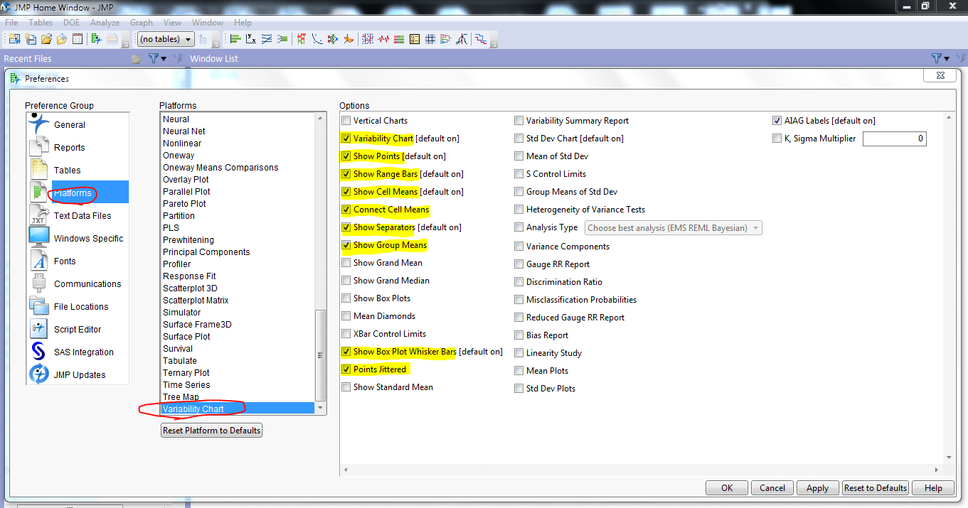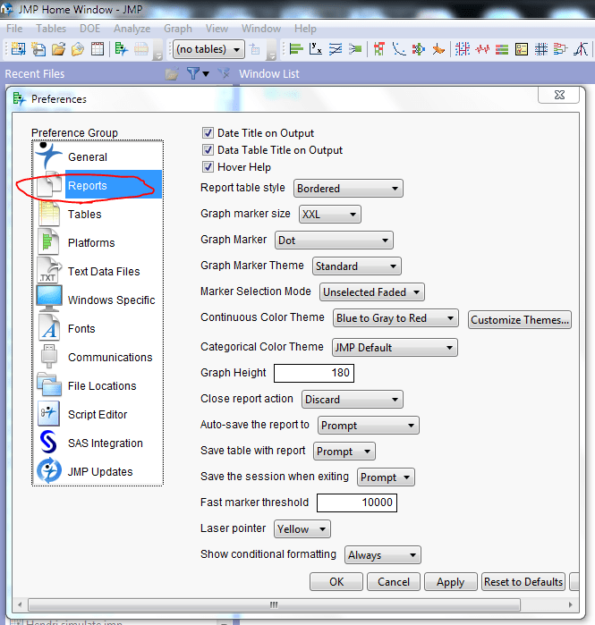 1. Setting up JMP Preferences
