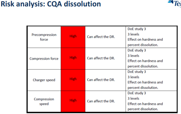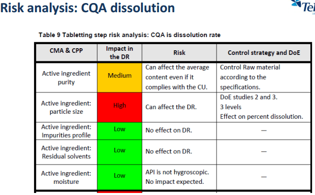 3. Risk Assessment Table: suggestion to separate the last column (DOE/Control Strategy) into two columns. First will talk about Risk Reduction strategy (DOE, process monitoring) and last about actual Control Strategy (actual adjusted settings/PARs for CPPs/CMAs) as a result of Risk Reduction strategy and DOE -this column can be filled out after the DOE execution.